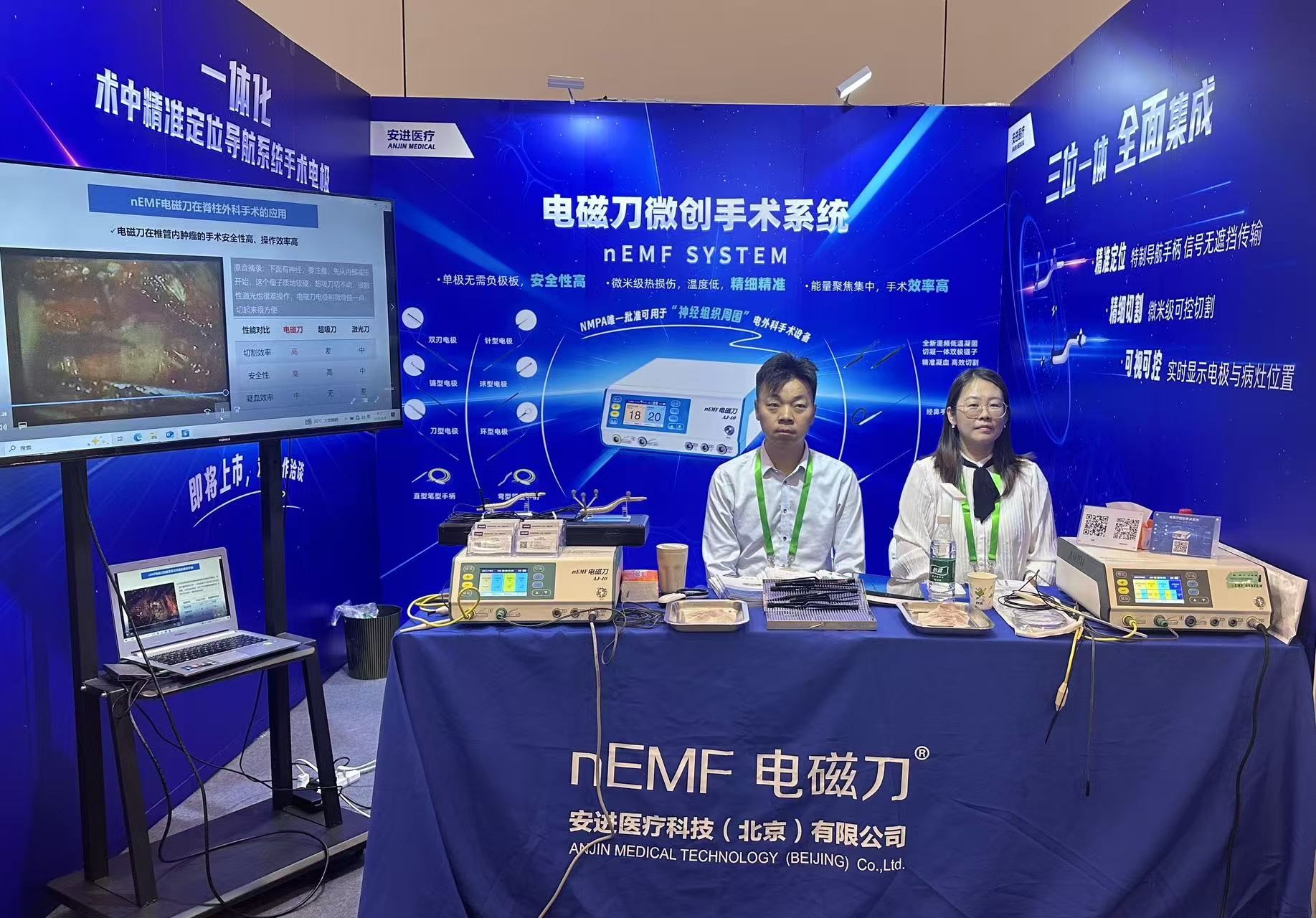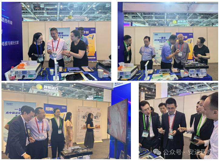 安进医疗在本次大会上重磅展示了新一代电磁刀微创手术系统及一体化术中精准定位导航手术工具,以“精准、安全、高效”的产品特性赢得满堂喝彩:
